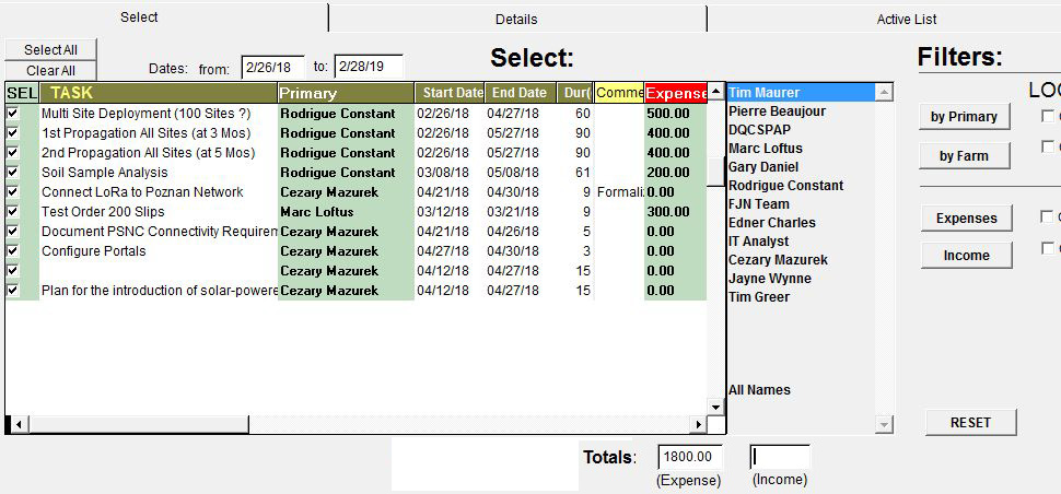 coming duties (w/ or w/o attached documentation).  Combined w/ SiFTeR,  this system could manage 100's of Smart-Farms, including financial data, necessary to insure their success