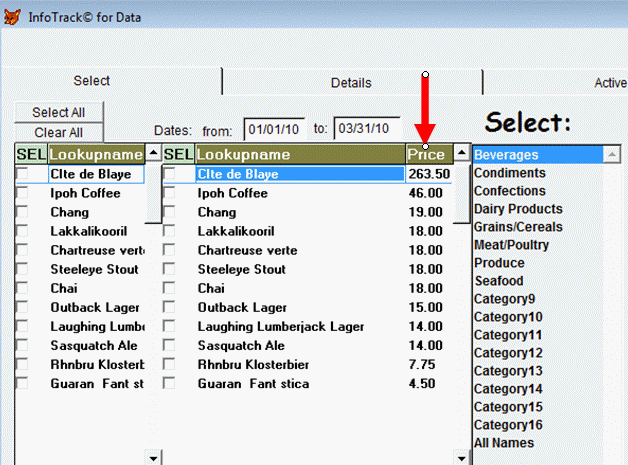 Clicking on any column will SORT the items